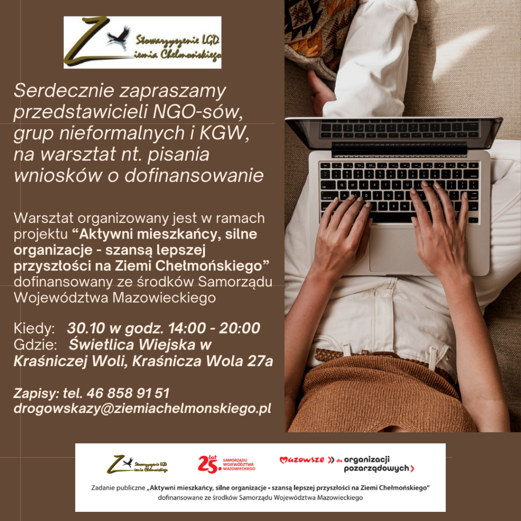 30 października br. zapraszamy przedstawicieli NGO’sów, grup nieformalnych, organizacji zrzeszających seniorów, czy członków KGW, na warsztat podczas którego poznacie zagadnienia związane